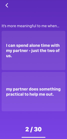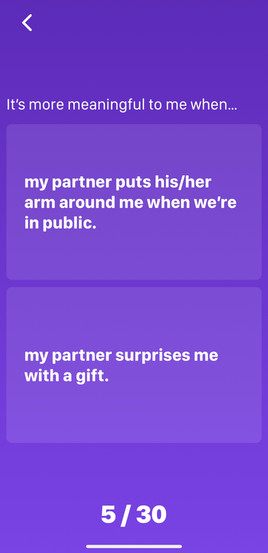 Love Nudge is a simple yet impressive iPhone app that you can take a 30 question quiz, on your own or with another, and will determine your love language and how much each means to you represented as a percentage. You can synch your results with your partner and be provided “prompts” as alerts to notify you when it would be a good idea to express your emotions through action to cater to the love language presented. I've shown the first five questions as well as my results from the full quiz in the slider above.